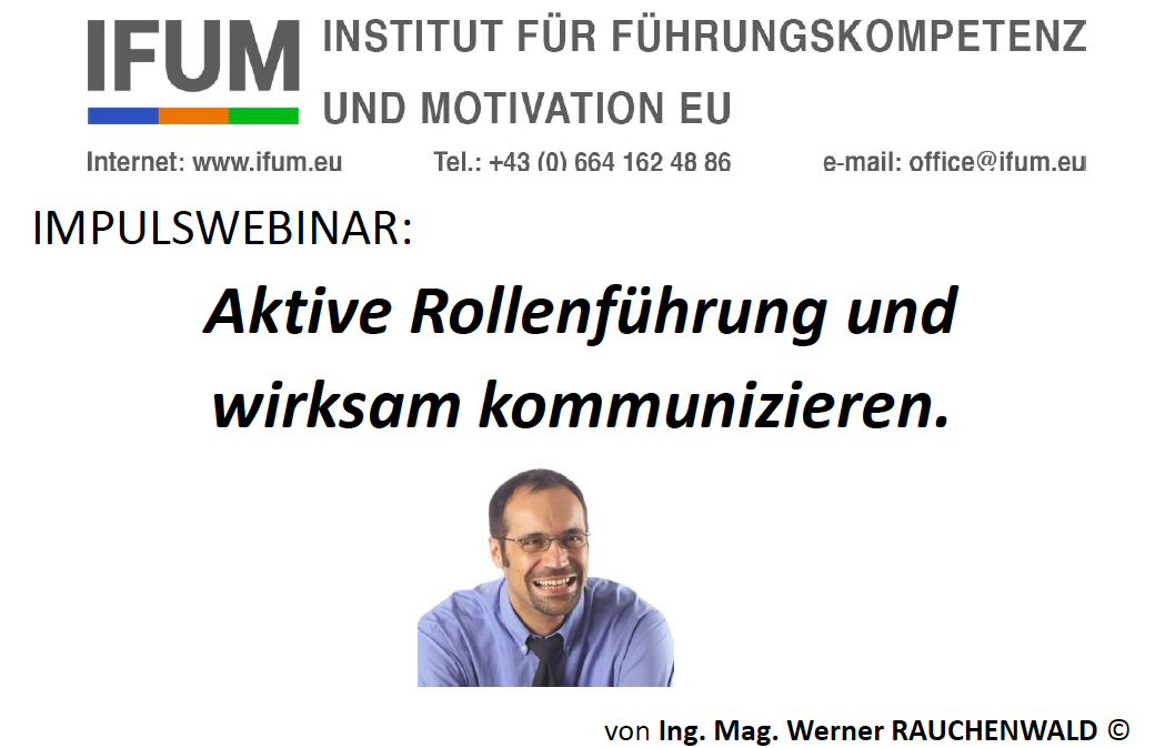 Der erste Referent, Werner Rauchenwald, führte in das Thema „Aktive Rollenführung und wirksam kommunizieren“ ein. Er leitet das Institut für Führungskompetenz und Motivation in Wien, das maßgeschneiderte Bildungs- und Qualifizierungsprogramme anbietet. Seine Kunden dabei sind u. a. Universitäten, Schulen, Akademien aber auch Ministerien, Alten- und Pflegeheime etc.