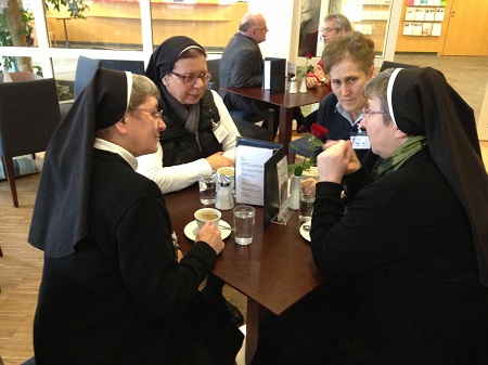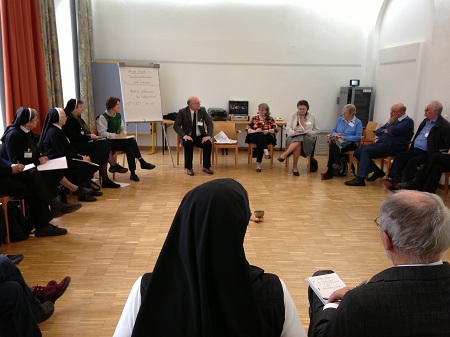 In Gruppen- und Plenumsgesprächen nahmen die Ordensfrauen und –männer bei der Ordenswerkstatt die Anregungen auf und diskutierten, was die Überlegungen zum Kulturwandel für das Ordensleben heute bedeuten. Sie sammelten auf Anfrage des Referenten hin Beispiele, wo Kirche heute gut funktioniert. Etwa im Hospiz der Caritas Socialis, in der Begleitung von Menschen in schwierigen Lebenssituationen, in der Bildungsarbeit als Befreiungsarbeit, im stillen Morgengebet, im Erleben der Stille mit Erstkommunionkindern, in der weltweiten Verbundenheit durch das Stundengebet, in einem Begegnungstag zwischen Ordensfrauen und muslimischen Frauen…