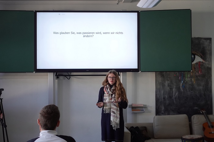Klimaaktivistin Anna Kontriner berichtete in einem Vortrag, wie der Kampf gegen die Klimakrise gelingen kann. (c) SVD