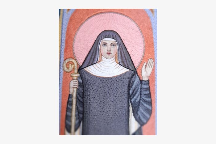 Detail der Stickarbeit auf einer Dalmatika mit der Darstellung der hl. Gertrud. (c) Kongregation der Schwestern vom Göttlichen Erlöser, Wien