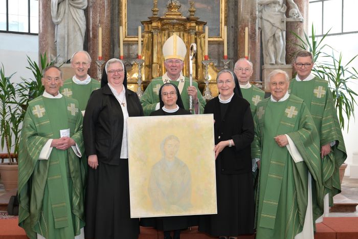 In Freude und Dankbarkeit verbunden: Die Ordensfrauen mit einem Bild ihrer Ordensgründerin Mutter Hyazintha (Theresia) Zechner (c) eds /Hiwa Naqshi