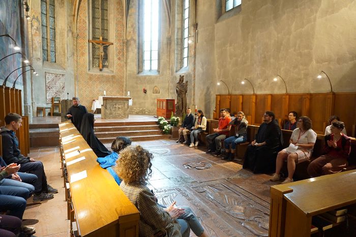 In drei Gesprächsrunden hatten die Ordensleute mit rund 25 Studierenden über die Themen "Reduzierter Radius oder auch: stabilitas", "Reduzierte Personenzahlen oder auch: Kleinerwerden, weiterwachsen" und "Reduzierte Geschäftigkeit oder auch: vita contemplativa" diskutiert und Impulse gesetzt.