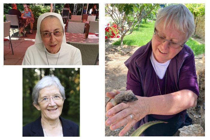 Sr. Bernadette Schwarz (links oben), Sr. Hildegard Enzenhofer (links unten) und Sr. Juliana Baldinger (rechts) berichteten über den Krieg im Heiligen Land. (c) Magdalena Schauer-Burkart, privat