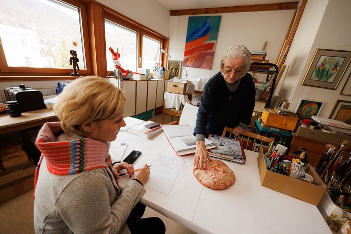 Sr. Ruth Lackner: Die Idee ist oft schnell da. Mich interessiert sehr, wie der Mensch ist. Ich habe auch bei Rudolf Szyszkowitz gelernt, der davon sehr viel verstanden hat. Und natürlich fallen einem die Themen durch die Bibel ein – und durch das tägliche Gebet. Auch der heilige Franziskus hat mich immer sehr fasziniert.