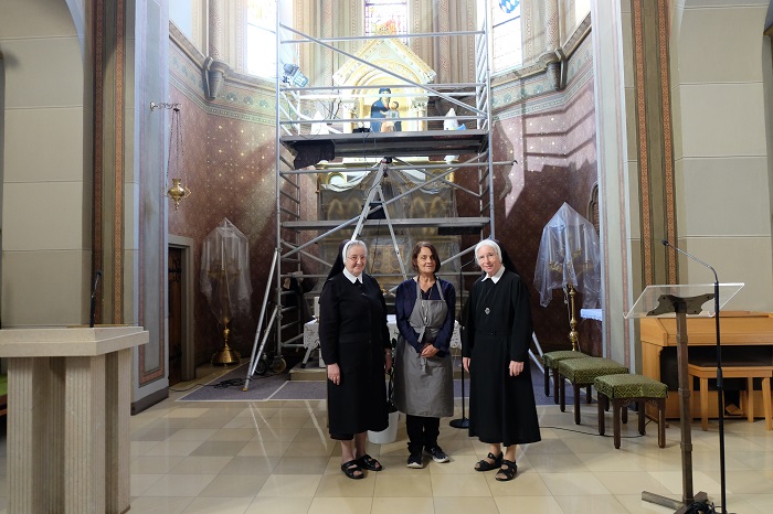 "Meine Restaurierungsarbeiten am Hochaltarbild haben mir große Freude bereitet, außerdem habe ich diesen Ort als besonderen Kraftort erleben dürfen und ich bin dankbar für die herzliche Begegnung mit den Schwestern.", berichtet die Restauratorin Brigitte Futscher. Auch die Schwestern sind erfreut über die abgeschlossenen Arbeiten an Ihrem Hochaltarbild. Die einzelnen Schritte der Restaurierung wurden mit Spannung beobachtet und Informationen beim gemeinsamen Mittagstisch ausgetauscht.