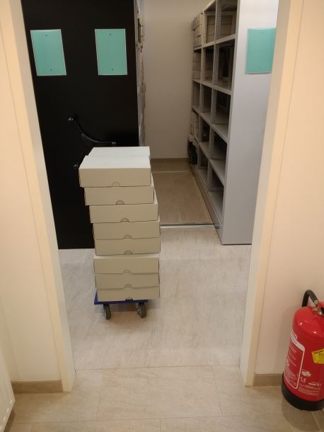 Abb. 5: Bewegung der Archivschachteln mittels Transportroller. (c) Lukas Winder.