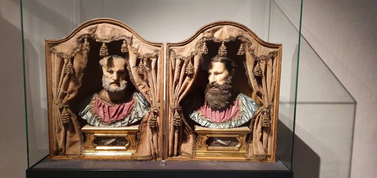 Wachsbüsten der hll. Peter und Paul, Leihgaben aus dem Benediktinerstift St. Paul im Lavanttal (c) Ordensgemeinschaften
