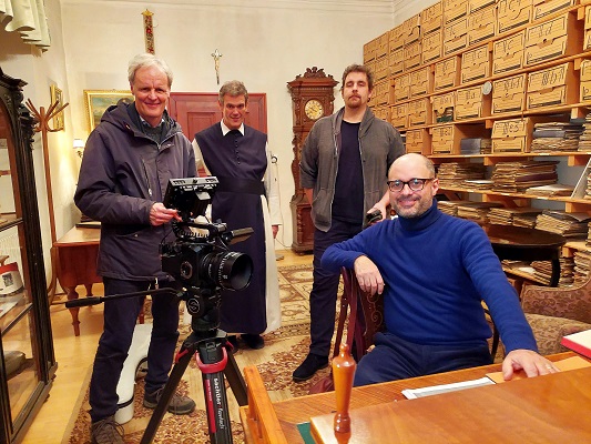 Das Filmteam im Musikarchiv (c) Musikarchiv Stift Heiligenkreuz
