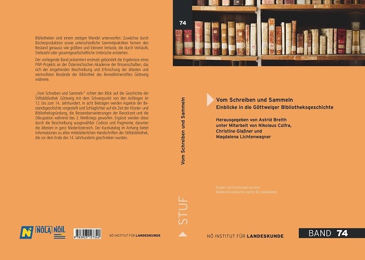 Die neue erschienene Publikation zur Bibliotheksgeschichte des Stiftes Göttweig: Vom Schreiben und Sammeln. Einblicke in die Göttweiger Bibliotheksgeschichte. Hrsg. von Astrid Breith unter Mitarbeit von Nikolaus Czifra, Christine Glaßner und Magdalena Lichtenwagner. (Studien und Forschungen aus dem Niederösterreichischen Institut für Landeskunde 74). St. Pölten: Verlag NÖ Institut für Landeskunde 2021 © NÖ Institut für Landeskunde