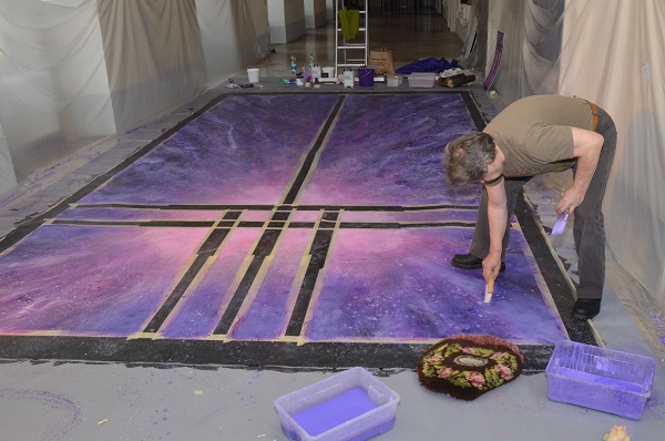 Ernst-Ferdinand Wondrusch bei der Arbeit am Klosterneuburger Fastentuch im Februar 2014 (c) Walter Hanzmann, Stift Klosterneuburg