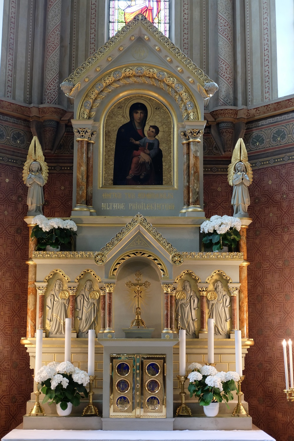 Das Gemälde der „Dreimal Wunderbaren Mutter“, lat. MATER TER ADMIRABILIS, ziert den Hochaltar und wurde von Josef Kastner d. J. im Jahr 1891 gemalt. Die Bezeichnung „Dreimal Wunderbare Mutter“ ist ein Ehrentitel für die Gottesmutter Maria, der 1604 von Jesuitenpater Jakob Rem geprägt wurde. Der Titel stammt aus den Anrufungen der Lauretanischen Litanei (Gl 566). Das Marienbild ist dem griechisch-byzantinischen Typus Hodegetria (die Weg-Weisende) zuzuordnen, die griechischen Buchstaben oben MHP (links) und ФУ (rechts) identifizieren die Dargestellte als Mutter Gottes. Die Mappa (eine Art besticktes zeremonielles Taschentuch) in ihrer linken Hand galt als kaiserliches Symbol und betont Marias königlichen Status als Regina caeli.