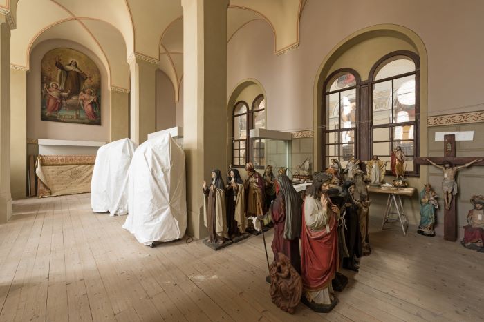 Eine Heilige neben der anderen: Unter den Skulpturen befinden sich u.a. eine barocke Skulptur der hl. Teresa von Ávila sowie Darstellungen der hl. Barbara und der hl. Elisabeth. (c) Universität für Angewandte Kunst