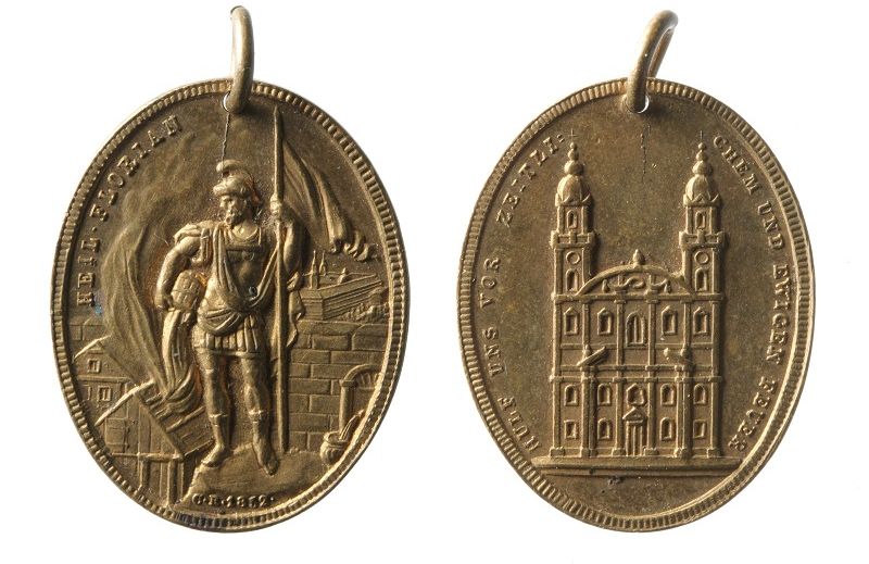 Medaille 1852 von Carl Radnitzky mit Darstellung Hl. Florian / Stiftskirche (c) Stift St. Florian