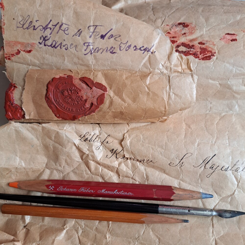 Maria am Gestade kann sich glücklich schätzen, kaiserliche Objekte zu besitzen: Zwei Stifte und eine Feder direkt aus der Hand Kaiser Franz Josephs. © Klemensblätter