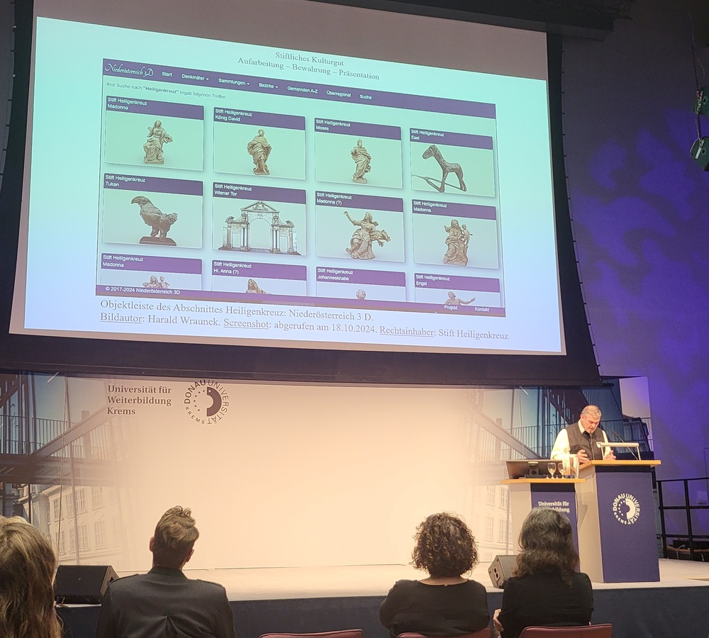 P. Roman Nägele OCist aus dem Zisterzienserstift Heiligenkreuz stellte sein umfassendes Tätigkeitsfeld als Kustos der Sammlungen vor. Das kulturelle Erbe des Stiftes Heiligenkreuz umfasst vielfältige Sammlungen, die im 18. und 19. Jahrhundert angelegt und kontinuierlich erweitert wurden. Dazu zählen Gemälde, Bozzetti von Giovanni Giuliani, Notenbestände im Musikarchiv, Münzen sowie Grafiken. Der Kustos P. Roman Nägele OCist legt großen Wert darauf, diese Schätze Forschenden, Studierenden und anderen Interessierten zugänglich zu machen. Verschiedene Bestände werden bereits auf entsprechenden Plattformen präsentiert.