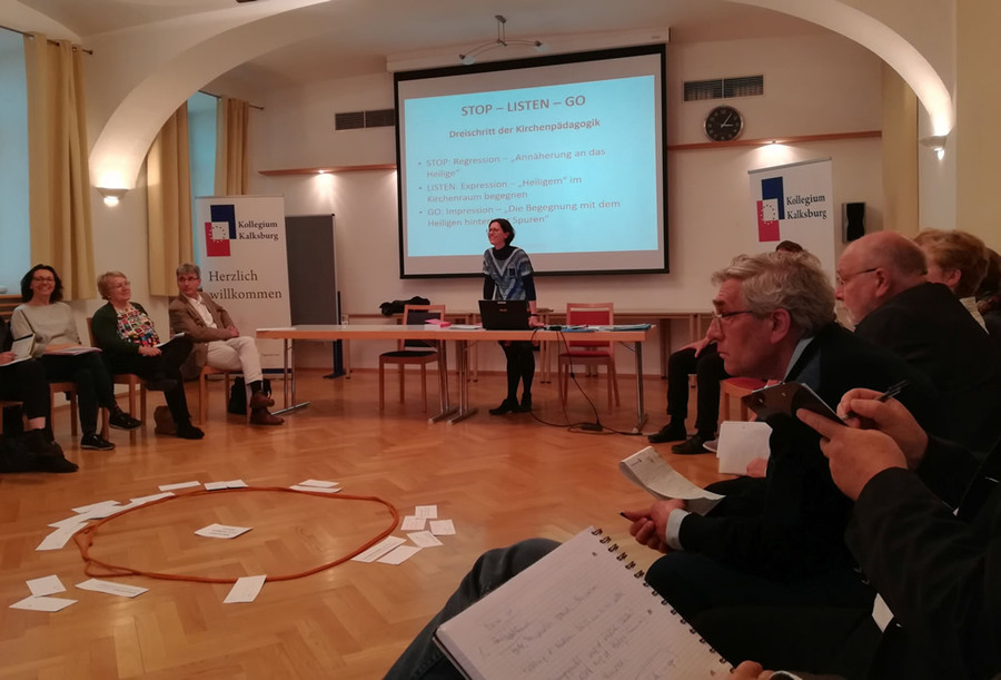 Als Fremdenführerin und Seelsorgerin sind mir sowohl die „klassische Führungstätigkeit“ als auch das Erschließen des Kirchenraumes als spirituelle Ressource für Menschen mit all ihren Chancen und Schwierigkeiten vertraut. Auch nach dem Vortrag bei der Jahrestagung Kirchenpädagogik ergab sich eine Diskussion über die Praktikabilität kirchenpädagogischer Ansätze in der Praxis. Im pfarrlichen Kontext, bei Erstkommunionkindern oder Firmlingen können persönliche Involvierung, langsame Annäherung und eine Konzentration auf Weniges bereichernd sein. Dagegen sind für viele BesucherInnen Gewohnheit, Erwartung und Anforderung an einen Kirchenbesuch – wenn geführt – noch immer „klassischer“ Natur: So wird viel Information über Geschichte und Baustile erwartet, und bei Busreisen sollen möglichst viele verschiedene Kirchen und Orte besichtigt werden. Dies ist für viele Kirchen und Klöster sicherlich eine herausfordernde Realität, der kirchenpädagogisch noch so wertvolle Alternativangebote nur in einem geringen Ausmaß begegnen können. Dennoch möchte ich auch als Fremdenführerin den kirchenpädagogischen Anspruch nicht ganz beiseitelassen, wenn ich mit Gästen Kirchenräume besuche. Ich habe die Erfahrung gemacht, dass oft kleine Elemente dieser drei Phasen – in „klassische Führungen“ eingebaut – schon viel persönliche Involvierung bewirken. Kirchenpädagogik ist viel mehr als wissenschaftliche Vermittlungstheorien und praktische Handlungsleitfäden. Kirchenpädagogik ist eine Haltung – die Haltung, Menschen zum Heiligen führen zu wollen.