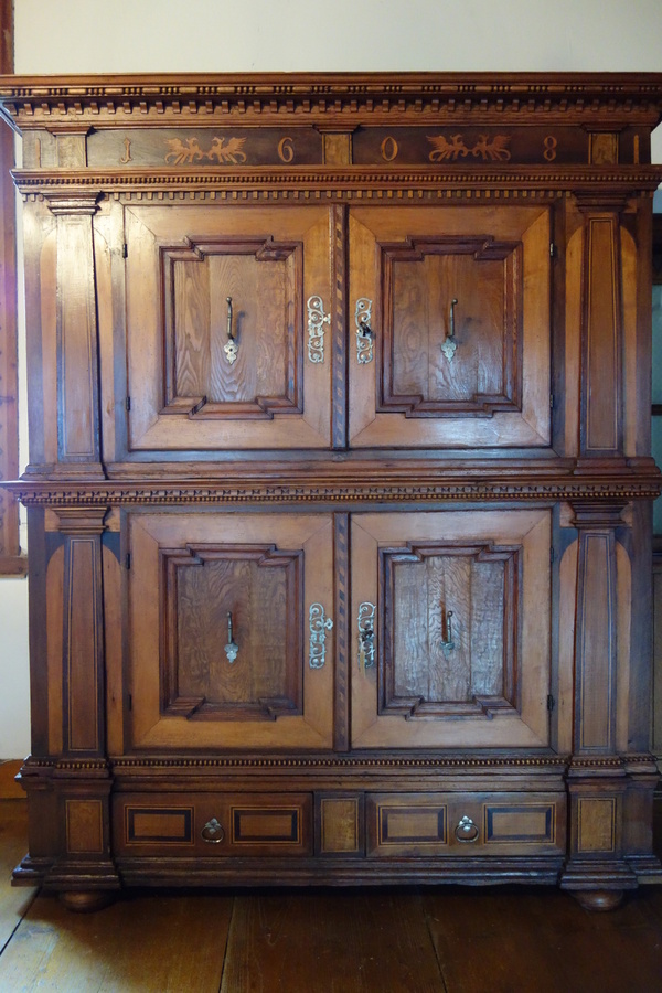 Was zu uns kam oder angeschafft wurde, wurde immer sorgfältig gepflegt und so benützt, dass nicht mehr Gebrauchsspuren entstanden, als unabdingbar ist. Und so verrät z. B. nur die eingeschnitzte Jahreszahl das Alter eines Kastens. (Abb. 8)