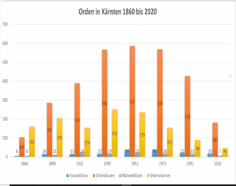 Was war geschehen? Zahlreiche Ordensgemeinschaften haben sich in der zweiten Hälfte des 20. Jahrhunderts aus Kärnten zurückgezogen, so die Jesuiten aus Klagenfurt und St. Andrä im Lavanttal, die Dominikaner aus Friesach, die Kapuziner aus Wolfsberg, die Kreuzschwestern aus Klagenfurt, um nur einige zu nennen. Das Benediktinerstift St. Paul im Lavanttal wurde über lange Zeit administriert, und wird es heute wieder. Die Don Bosco-Schwestern haben Klagenfurt im Sommer 2020 verlassen. Wie es mit der Servitenpfarre in Maria Luggau und den Kapuzinern in Klagenfurt weitergehen wird, ist ebenso ungewiss wie mit den Ursulinen.