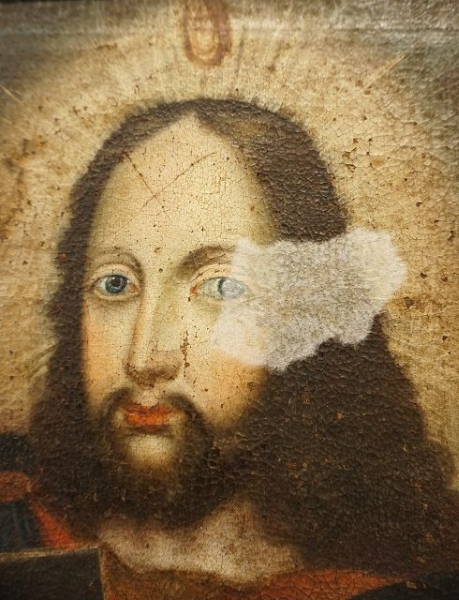Abb. 6: Kaschierung eines Leinwandrisses mit Japanpapier. Karmelitenkonvent Linz (c) Barabas