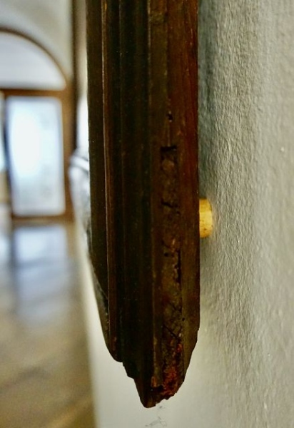 Abb. 8: Korken auf der Rückseite der Zierrahmen als Abstandhalter zur Mauer. Karmelitenkonvent Linz (c) Barabas