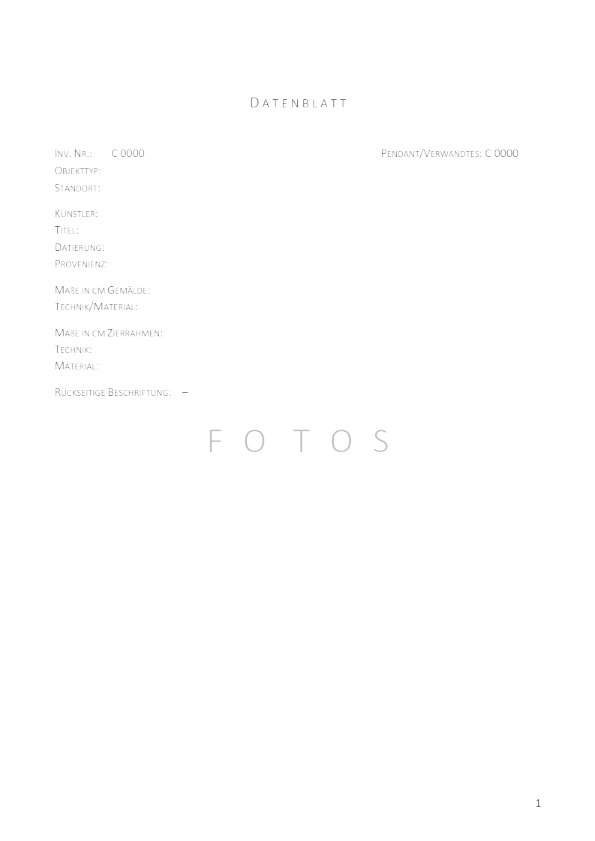 Jedes Datenblatt enthält ein Zustandsprotokoll. Darin wird das Objekt Schicht für Schicht von der Trägersubstanz bis zur Oberfläche systematisch erfasst. Ergänzend werden Schädlingsbefall und der Zustand von Keil- bzw. Spann- und Zierrahmen, falls vorhanden, vermerkt. Ebenso werden die getroffenen konservatorischen Maßnahmen und der Zustand in eine dreiteilige Schadenskategorie eingestuft. Die Konservierung dient zur bestmöglichen Konsolidierung und Stabilisierung des vorgefundenen Zustands, ersetzt jedoch nicht die erforderliche Restaurierung.