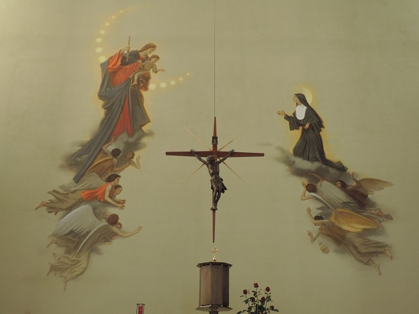 83 Maria Ausiliatrice und Maria Mazzarello im Santuario Maria Mazzarello in Mornese (Abb. 9), Gemälde von Mario Caffaro Rore, die „Glorie der Heiligen Maria Mazzarello“ dars