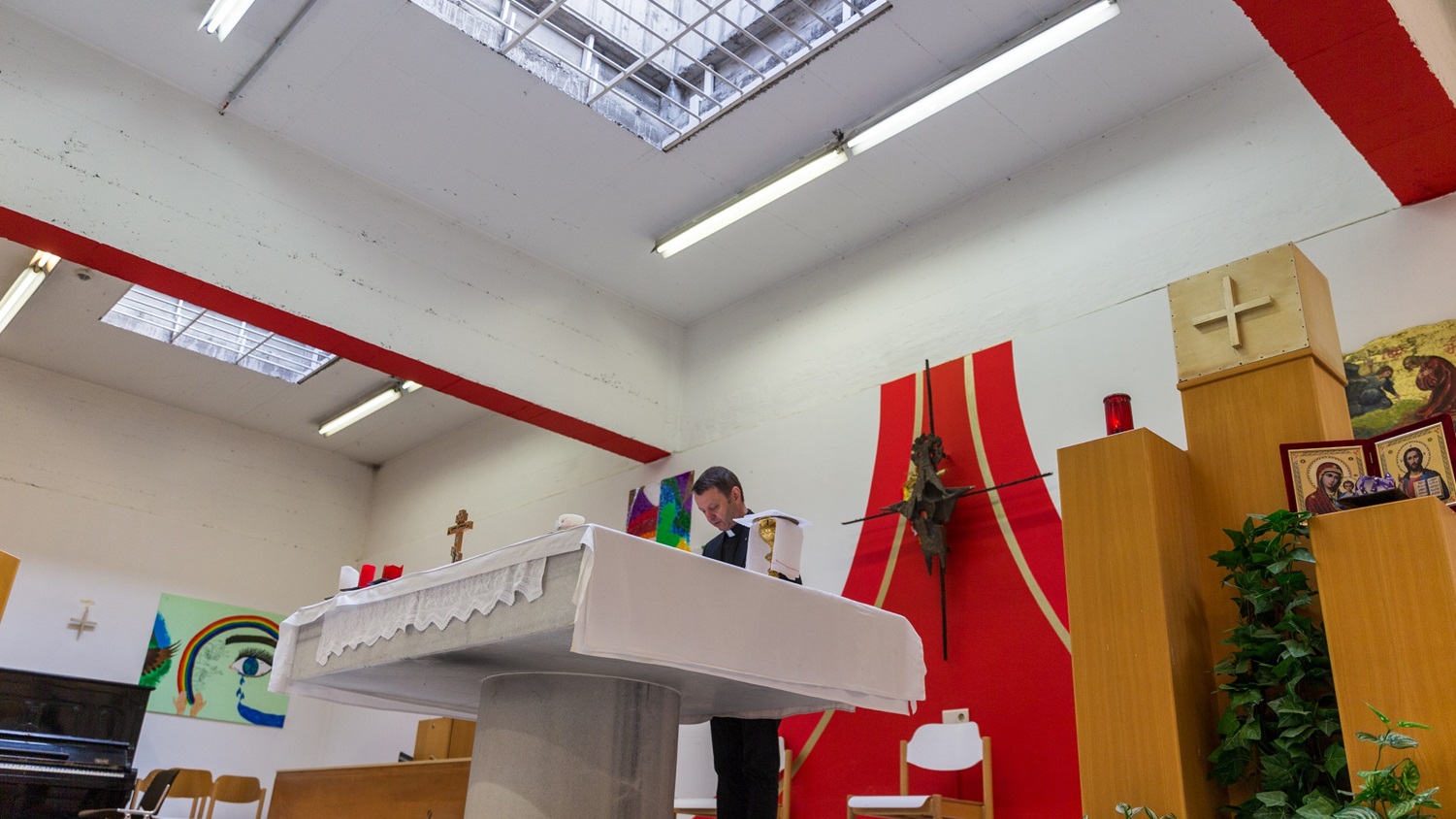 Auch wenn man es nicht vermuten würde: P. Martes Erfahrung ist, dass in Gefängnissen wahrscheinlich genau so viel gebetet wird wie in Kirchen oder in Krankenhäusern. „Das ist eine Grenzsituation, wo Menschen auf sich zurückgeworfen sind. Man hat unendlich viel Zeit. Da kommt man ins Denken, und dann kommen ganz grundsätzliche Fragen auf.“ Immer montags um 13 Uhr findet ein Gottesdienst in der Gefängniskapelle statt, an dem 20 bis 30 Menschen teilnehmen. „Mehr würde auch nicht gehen, denn es müssen immer mehrere Beamte dabei sein“, erklärt P. Marte.