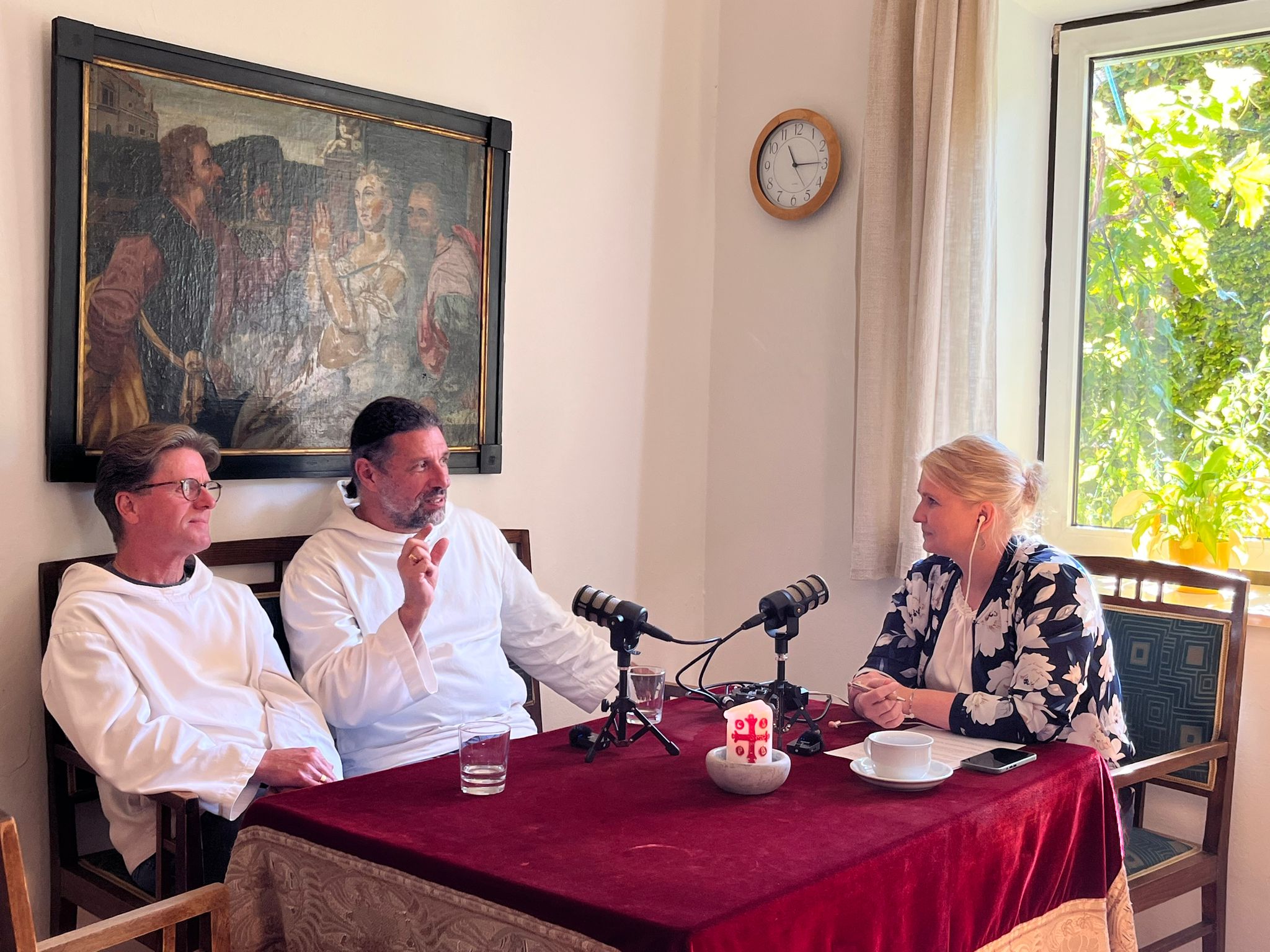 V.l.: Br. Raphael Gratzer und Br. Thomas Hessler im Gespräch mit Renate Magerl vom Medienbüro der Österreichischen Ordenskonferenz. © Europakloster Gut Aich / Susanne Windischbauer Fotodownload