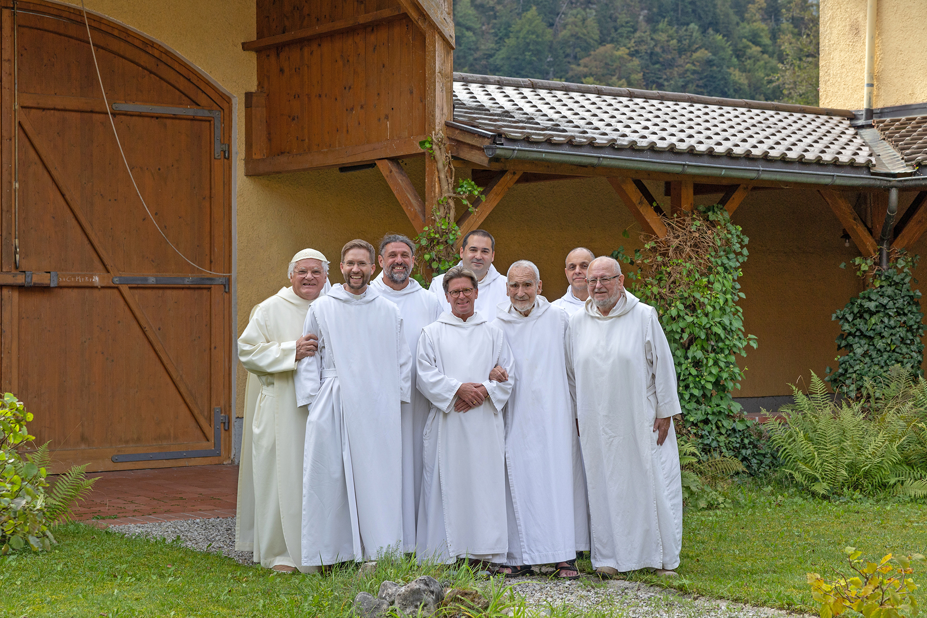 Die Mönche vom Europakloster Gut Aich (v.l.): P. Johannes, Br. Benedikt, Br. Thomas, Br. Raphael, Br. Wolfgang, Br. David, Br. Franziskus, Br. Michael. © Europakloster Gut Aich / Susanne Windischbauer Fotodownload