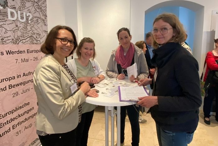 Die Führung fand ihren Abschluss im „Museum am Dom“. Das kirchliche Museum im Herzen der Landeshauptstadt wurde letztes Jahr nach einer umfassenden Renovierung neu eröffnet, die neuen Räume – großzügig und architektonisch ansprechend – beherbergen gerade die Ausstellung „Europa. Wer bist du? Menschen, Mächte, Mythe“. Dieser erste Teil eines dreiteiligen Ausstellungszyklus geht der Frage nach, was Europa eigentlich ausmacht.