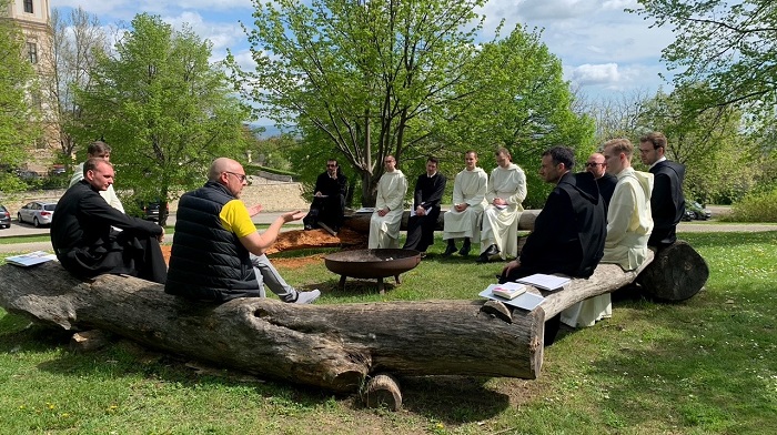 Die jungen Ordensmänner im Austausch mit Kommunikations-Coach Georg Wawschinek. (c) P. Maximilian Krenn