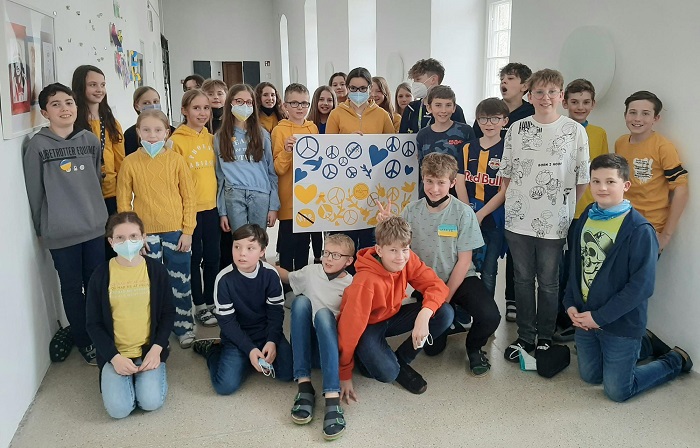 Den Schülerinnen und Schülern war es ein besonderes Anliegen, sich für die Ukraine sozial zu engagieren. Einige ihrer vielen Ideen wurden in die Tat umgesetzt: Buttons mit positiven Symbolen in den Farben der ukrainischen Nationalflagge wurden gestaltet und gegen freiwillige Spenden verkauft. Schülerinnen und Schüler backten Kuchen (u. a. blau-gelbe Muffins) und bereiteten belegte Brote für das Pausenbuffet vor. Im Sportunterricht fand eine Laufwoche unter dem Titel „Run4Ukraine“ statt. Der Elternverein spendete für die gelaufenen Kilometer.