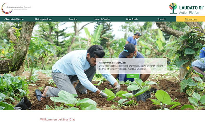Im Rahmen des Pressegespräches wurde die neue Website www.5vor12.at vorgestellt. Die Website enthält alle österreichrelevanten Informationen zum Thema Laudato sì. Auf der Website werden laufend aktuelle Projekte und Aktionen der Ordensgemeinschaften vorgestellt, Angebote für Ordensgemeinschaften zum Thema Laudato sì präsentiert sowie Informationen, wie jede/r Einzelnen mitmachen kann, bereitgestellt und vieles mehr.