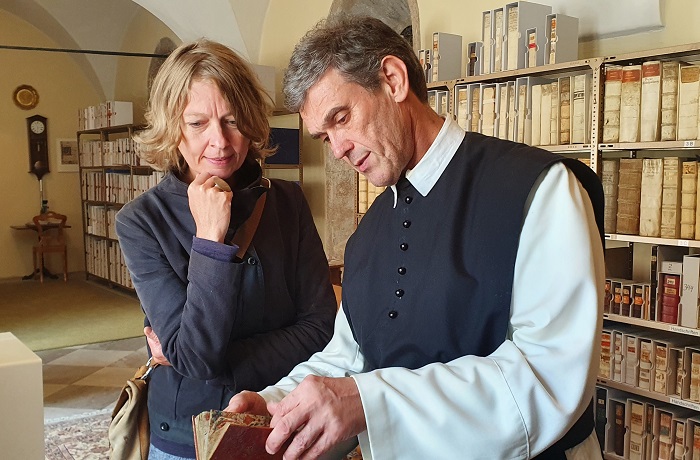 Susanne Barabas wird den Bereich Kunst und Denkmalpflege tatkräftig unterstützen. Hier im Bild mit P. Roman Nägele, Kustos von Stift Heiligenkreuz. (C) Ordensgemeinschaften