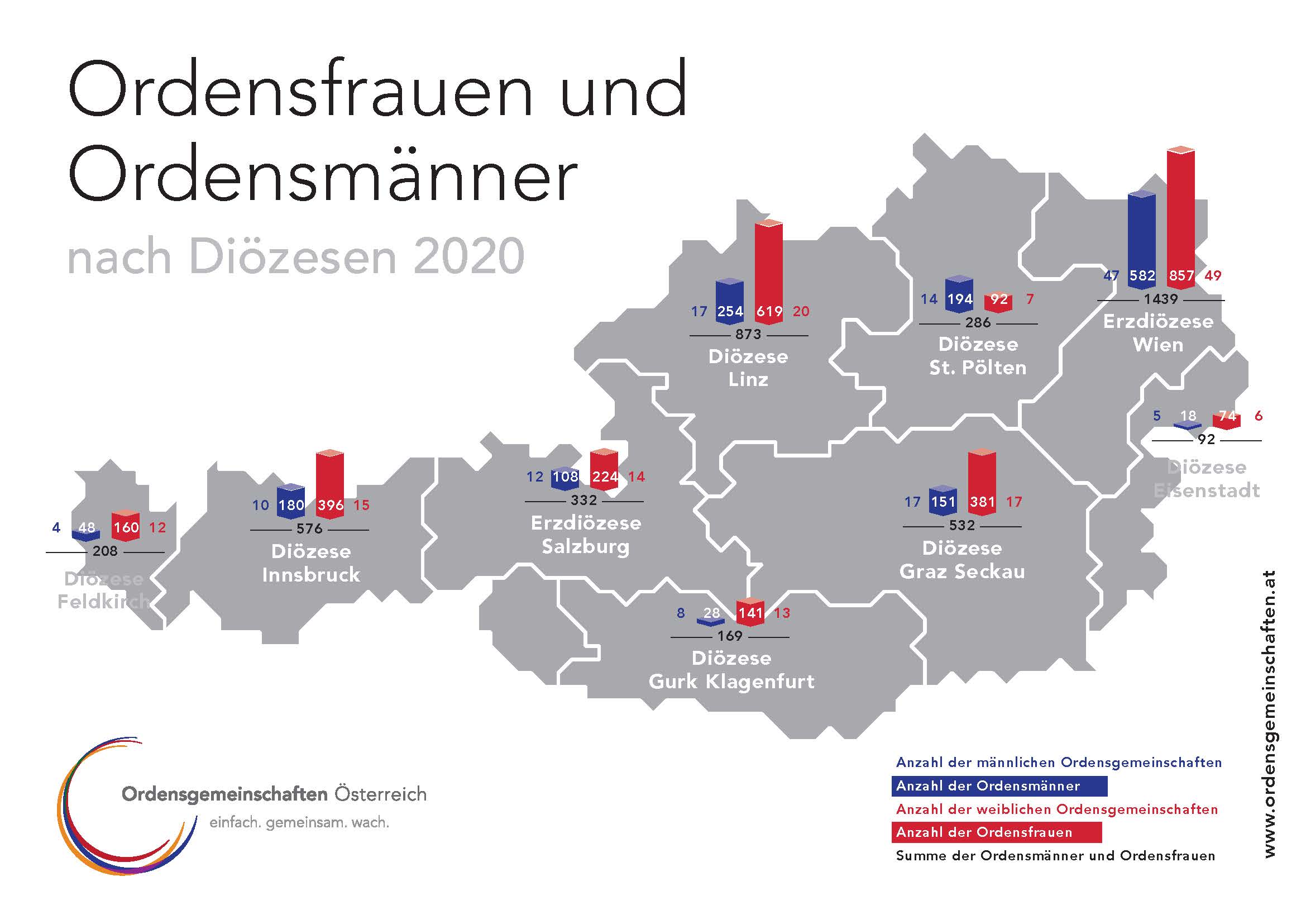 Ordensfrauen und Ordensmänner nach Diözesen 2020. Download als pdf | jpg (c) OG