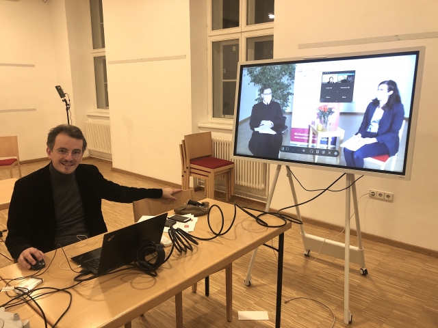 Das Medienbüro betreute die Veranstaltung aufgrund von Schutzmaßnahmen aus dem Nebenraum (c) schauer-burkart