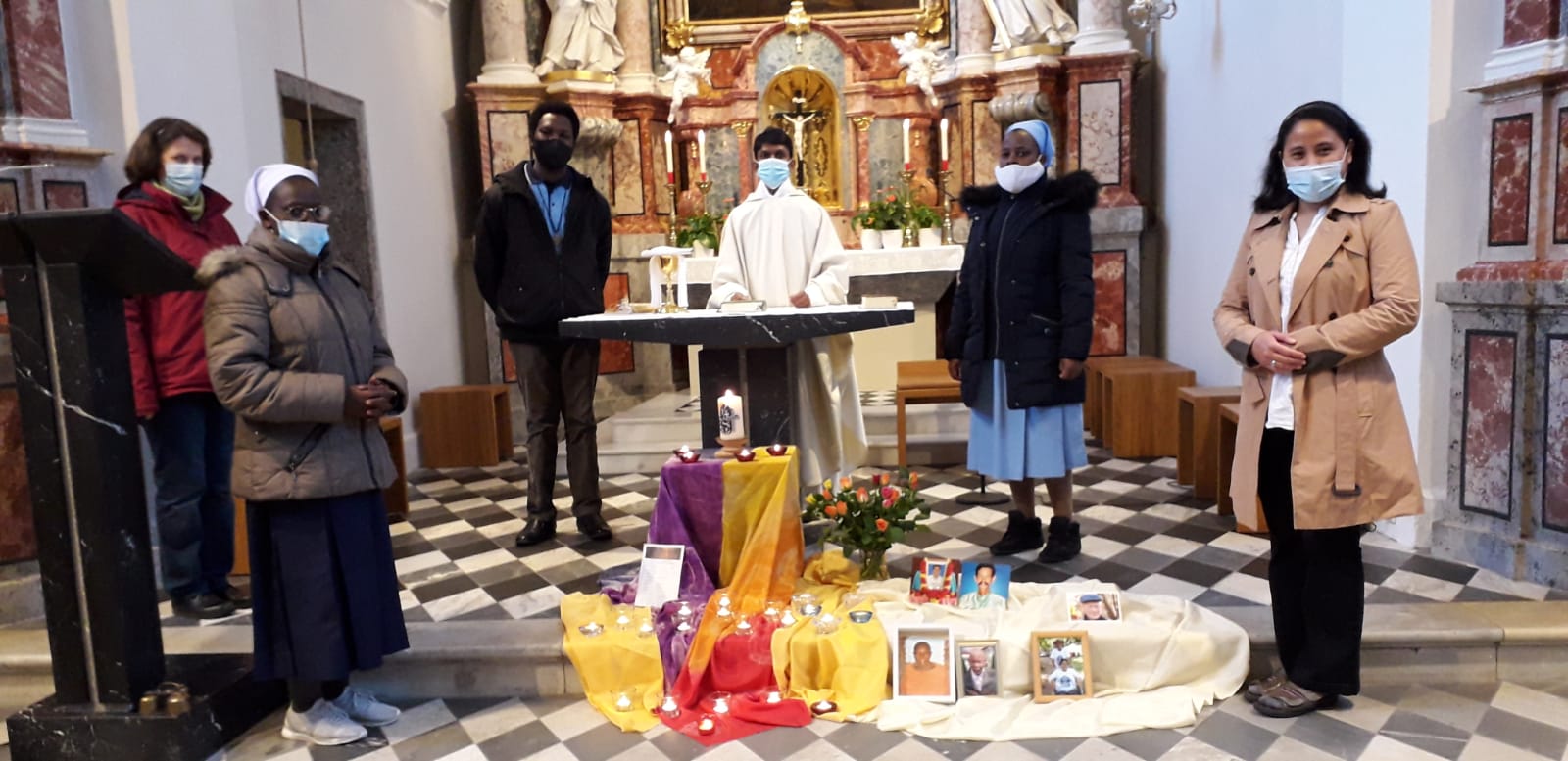 Mitfeiernde an diesem Gottesdienst kamen aus Indonesien, Indien, Nigeria, Tansania und Rumänien und hielten die Sicherheitsvorkehrungen ein. (c) Steyler Missionare