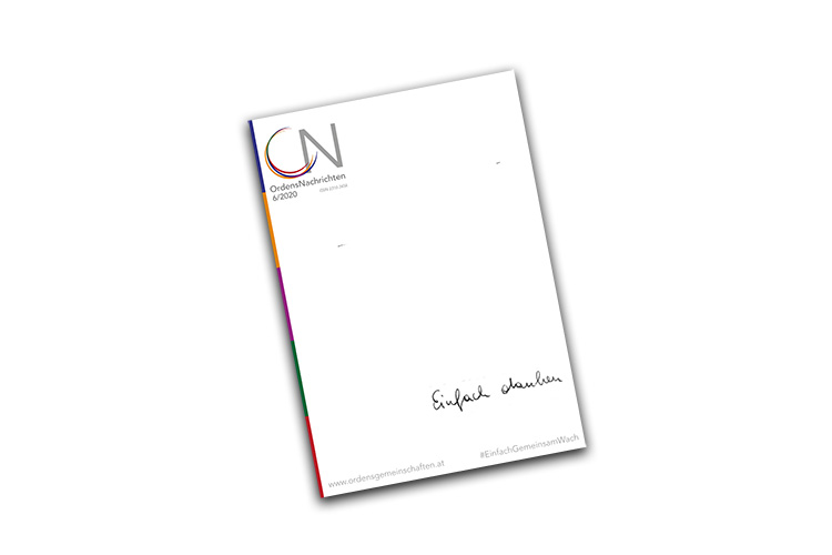 Chefredakteur Martin Gsellmann zieht Bilanz: „Die ON 6/2020, nun auf neuem Umweltpapier gedruckt, stellt für sich einen kleinen Abschluss einer Entwicklungsgeschichte dar, die wir als Medienbüro der Ordensgemeinschaften Österreich gemeinsam vor einem Jahr bei einer Klausur im Stift Melk begonnen haben. Mit dem Künstler und Grafikdesigner Kilian Wittmann und der Agentur Prospera haben wir schrittweise das Layout und als Redaktion – nun erweitert um Generalsekretärin Sr. Christine Rod – auch unsere inhaltlichen Leitlinien versucht neu zu konzentrieren. Die Ordensnachrichten sollen mit einem bewusst #einfachen Erscheinen und den verstärkt #gemeinsamen Inhalten aus den verschiedenen Bereichen der Österreichischen Ordenskonferenz #wach den Weg der Österreichischen Ordensgemeinschaften in die Zukunft begleiten.“