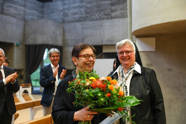 Dank sprach die stellvertretende Vorsitzende auch der ehemaligen Generalsekretärin Sr. Cordis Feuerstein aus. Es sei ein Glücksfall gewesen, als 2010 Sr. Cordis von ihrer Gemeinschaft die Erlaubnis bekam, diese herausfordernde Aufgabe zu übernehmen. Neben vielen anderen Tätigkeiten bewies sie einen äußerst engagierten Umgang mit der schwierigen Aufgabe der Mitarbeit in der Opferschutzkommission. Ihr Markenzeichen sei stets die Antwort „Kein Problem!“ gewesen.