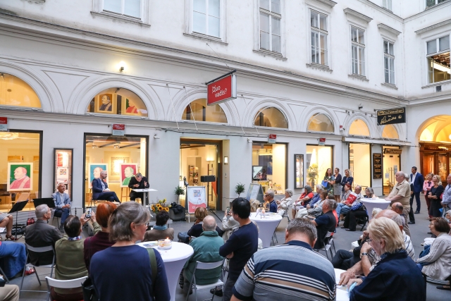Der Einladung zur Ausstellungseröffnung am 31. August 2020 sind rund 100 Personen gefolgt. Die Veranstaltung hat im Zwettlerhof unter freiem Himmel stattgefunden. „Ich hab dem wunderbaren Silberschneider amüsiert zugehört und hab mir auch gleich das Programmheft des Quo vadis? mitgenommen. Das war ein gelungener Abend!“, sagt eine Besucherin beim Abschied.