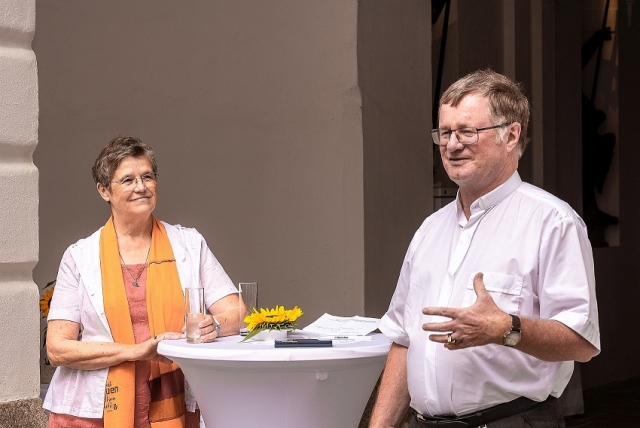 Die Salvatorianerin Sr. Maria Schlackl SDS und Bischof Manfred Scheuer, der die Gäste im Bischofshof begrüßte. (c) Martin Eder