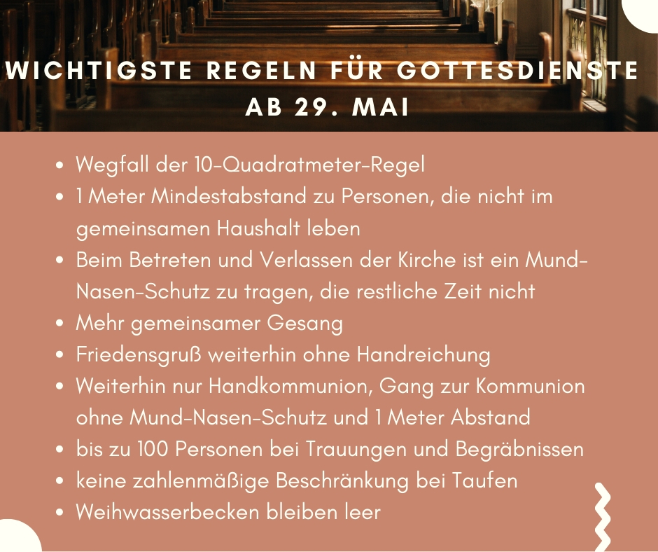 Erleichterte Regeln für Gottesdienste ab 29. Mai