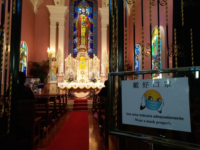Die Infektionen stiegen in wenigen Tagen bis auf zehn Fälle, sieben Personen aus Wuhan und drei lokal infizierte Menschen. Das veranlasste Regierungschef Ho Iat-seng am 4. Februar alle nicht notwendigen Einrichtungen wie Büros und Tempel zu schließen. Die Schulen und Universitäten wurden nach den Ferien nicht mehr geöffnet. Auch Ferienresorts mit ihren Casinos wurden geschlossen. „People before Profit“ lautete die Devise. Auch die Kirchen schlossen sich dem Aufruf der Regierung an und machten am 5. Februar ihre Pforten dicht. Gottesdienste gibt es seither nur online, seit März wird die Kommunion nach den Online-Gottesdiensten auf den Pfarrplätzen verteilt. Seit 5. April sind Wochentagsgottesdienste wieder erlaubt, natürlich nur bei Einhaltung strenger Vorschriften wie Gesichtsmaske, Verzicht auf Kelchkommunion, Friedensgruß und Liederbücher.