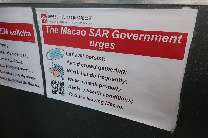 Als am 22. Jänner 2020 – zwei Tage vor dem Chinesischen Neujahrfest – der erste Coronafall in Macao bekannt wurde, wurde die Gefahr von der Regierung sofort erkannt – und entschieden gehandelt: Maskenpflicht im öffentlichen Raum, Absage von Festveranstaltungen, Dokumentation von Reisen und schließlich schrittweises Herunterfahren der S.A.R. (Self Autonomous Region). Durch die Nähe zu Festland-China war Macao vorgewarnt und vorbereitet. Auch die Erfahrungen mit dem SARS-Virus im Jahr 2003 trugen dazu bei.