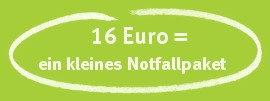 16 Euro kostet ein kleines Notfallpaket — enthalten sind Grundnahrungsmittel und Hygieneartikel, die einem Menschen über die nächsten Tage helfen. |
