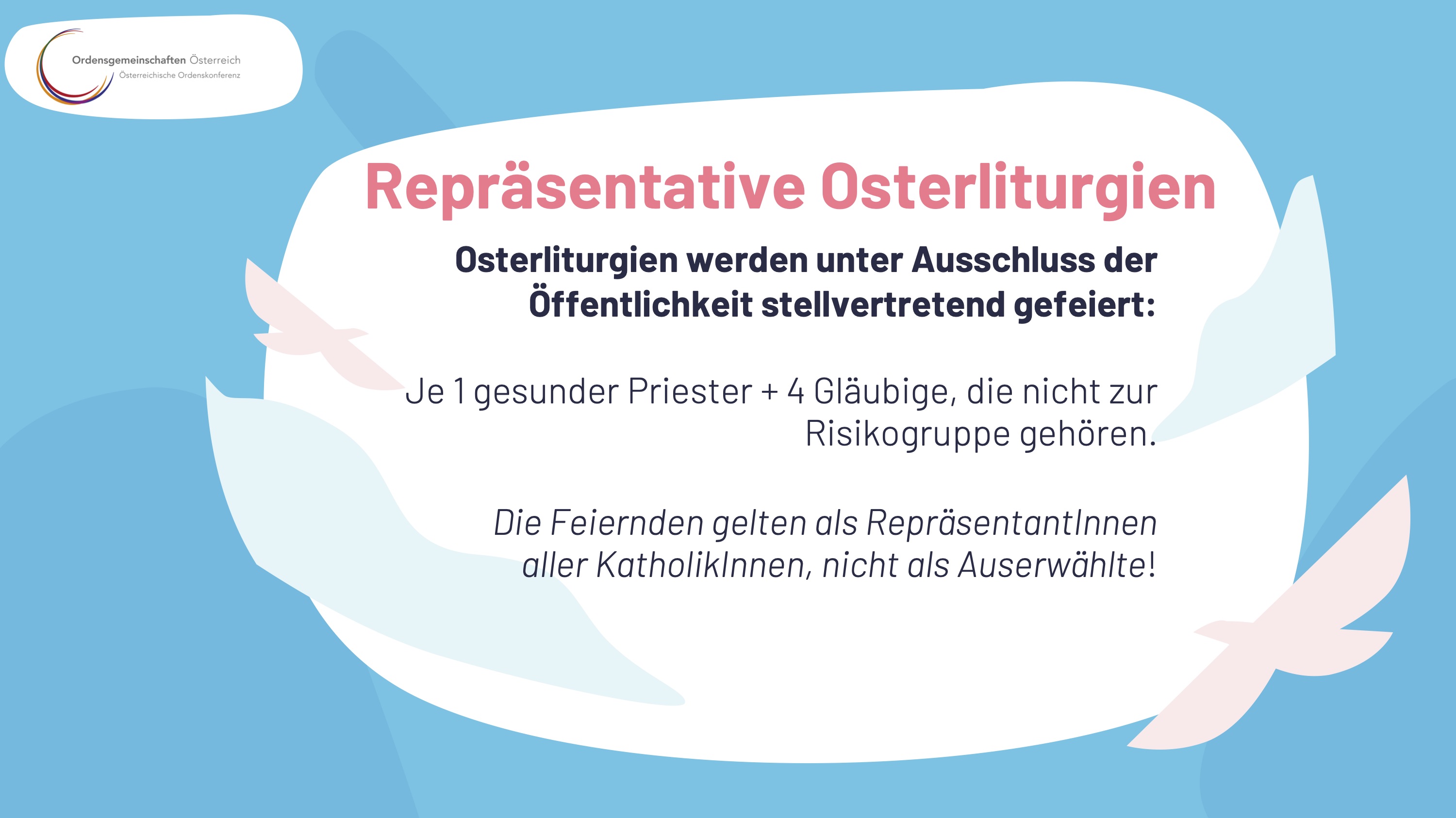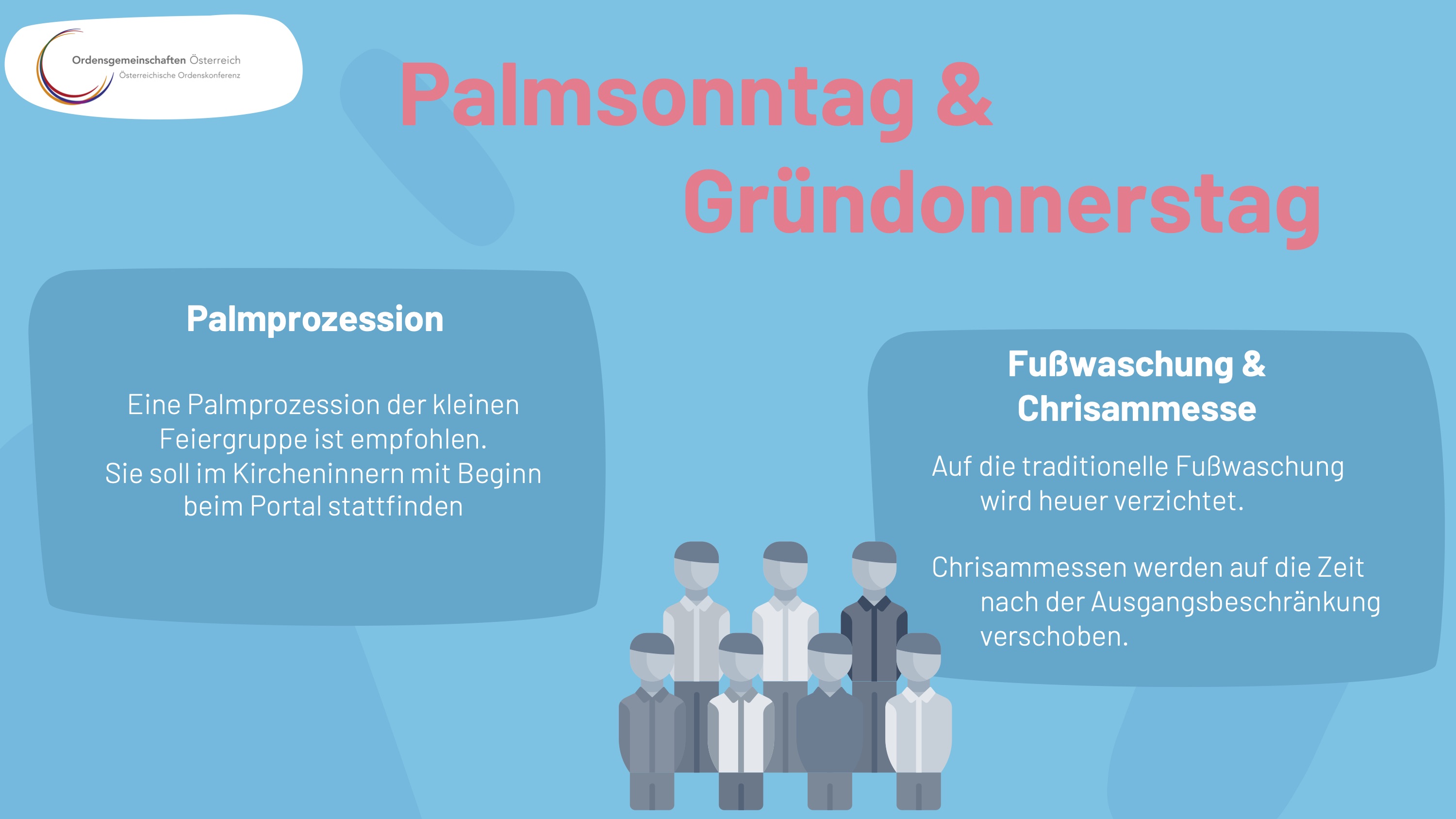 Das Büro des Bereichs Kommunikation und Medien der Österreichischen Ordenskonferenz hat die Regelungen der Bischofskonferenz zusammengefasst und grafisch aufbereitet, um allen Katholikinnen und Katholiken eine schnelle Übersicht zu geben: