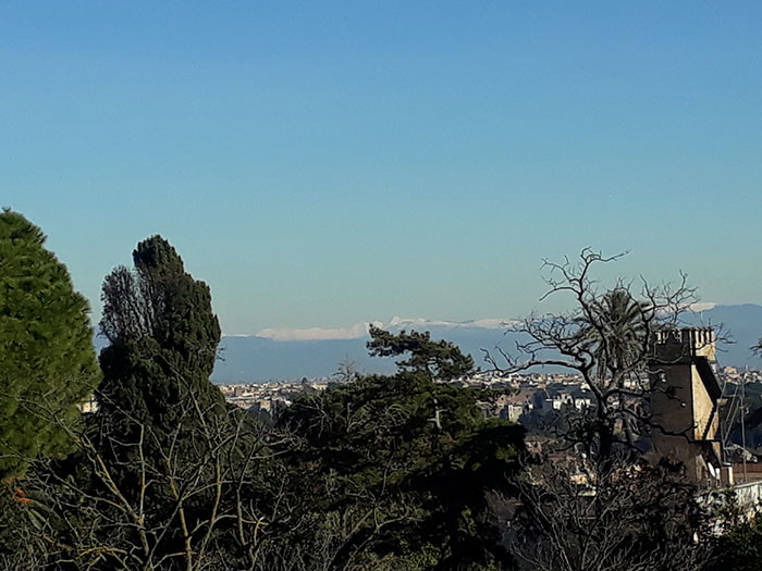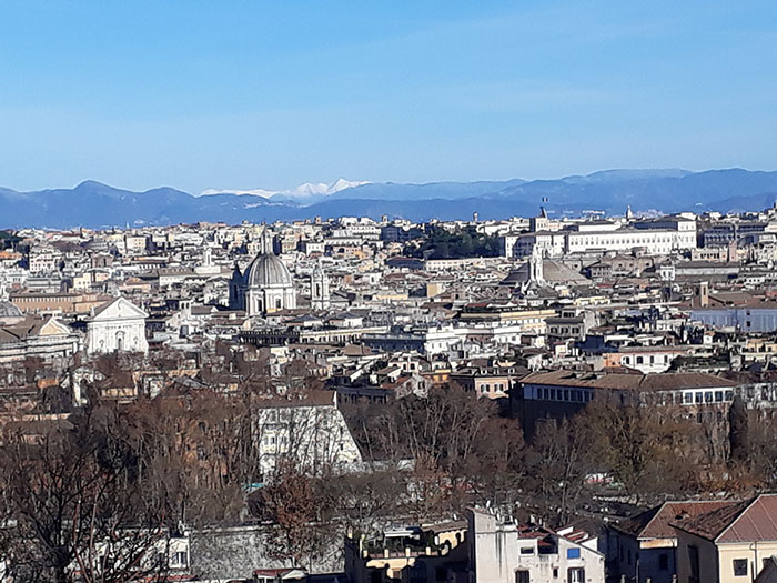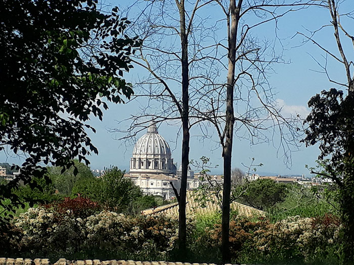 Wir haben momentan ziemliches Glück hier in Rom, weil unsere Schwestern vor vielen Jahren diesen Wohnort ausgesucht haben, der damals noch außerhalb der Stadt lag und heute am Gianicolo bzw. Monte Verde liegt. Wir haben einen schönen Garten, und sind in der glücklichen Lage, uns ein bisschen in der Natur draußen bewegen zu können. Unsere Mutterhausgemeinschaft umfasst 25 Schwestern und zusätzlich lebt und arbeitet hier auch noch das Generalat. Normalerweise sind wir da eigentlich sieben Schwestern, allerdings sind die Generalleiterin und die Vikarin momentan auf Sri Lanka gestrandet.