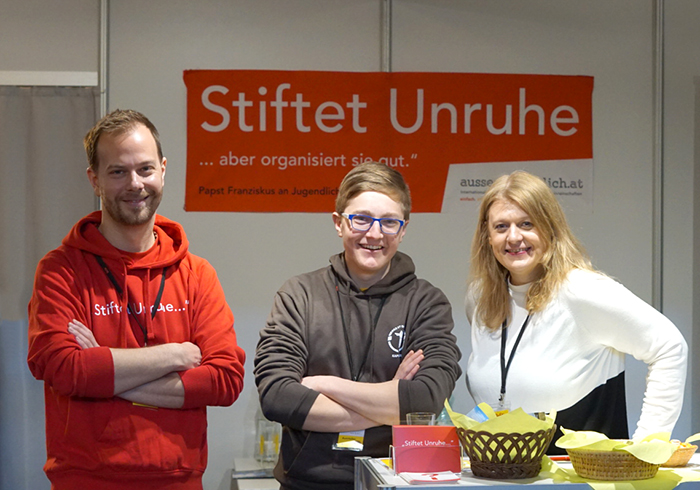 Stiften gemeinsam Unruhe am Stand Nr. 60: Lukas Korosek, Josef Santner und Elisabeth Grabner. (c) Mayr