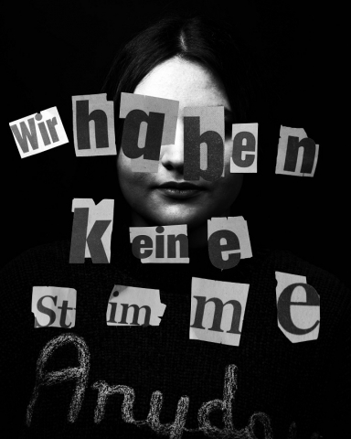 Eine der Fotoarbeiten der Wirtschaftschule Amstetten, die sich mit der Abschiebung von Asylwerbern beschäftigt. (c) Wirtschaftschule Amstetten