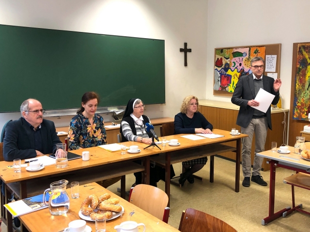 Bei der Pressekonferenz sprachen: (v.l.n.r.) Hans Müller, Ester Steininger, Sr. Elvira Reuberger, Elisabeth Ortner und Direktor Leopold Dirnberger in der Wirtschaftschule Amstetten. (c) Martin Gsellmann